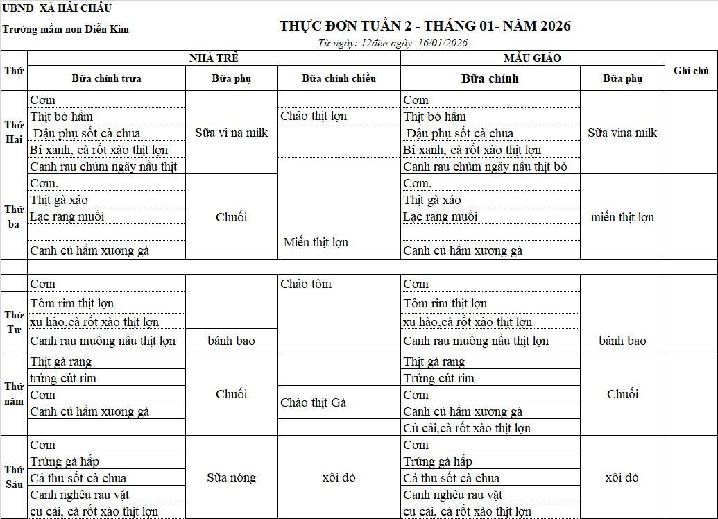Trường MN Diễn Kim thông báo lựa chọn các nhà cung ứng thực phẩm năm học 2025- 2026